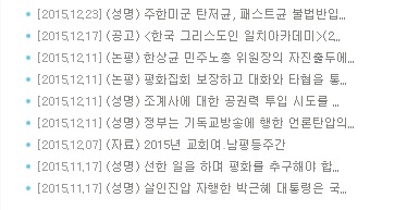 그리고 이 분들이 만든 교계 신문을 보면 종교와는 상관없는 북한 애기봉 철탑 이야기나 박근혜 살인진압, 한상균 민노총 등